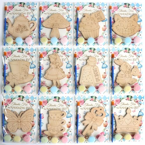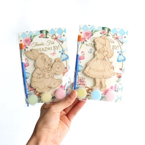 🐇12 Individually Wrapped Wonderland Kits – Each set includes a wooden Alice-themed magnet, pastel paints, brush, and a charming “Thanks for Wandering By!” card, ready to gift, no prep needed!