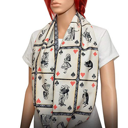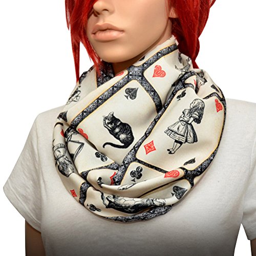 Handmade Alice in Wonderland themed infinity scarf. With characters from classic book by Lewis Carroll Alice in Wonderland – Alice, White Rabbit, Mad Hatter, Cheshire Cat, Queen of Hearts, Mock Turtle and Duchess . Perfect accessory for any outfit ! A continuous loop allows to wear the infinity scarf in several different ways. Long enough to wrap it twice on you neck. Printed on cream colored fabric and finished in double layer tube style – no raw edges. Measurements approx. 54″ Loop 9″ wide (18″ circumference)