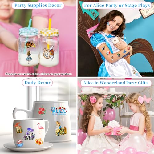 4 – Versatile Decorations in Alice in Wonderland Themed – You can also use these alice decor temporary tattoos to decorate various items, stick them on mugs, glasses, building blocks, sports water bottles, laptops, phone cases, and suitcases. Perfect for alice in onederland party, they can be used as onederland party favors, onederland decorations, or used in classrooms, sparking children’s interest in literature.