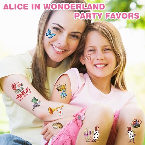 2 – High Quality Materials – Our alice and wonderland tattoos are made from high quality materials, suitable for both children and adults. Printed in vibrant colors, these alice in wonderland favors tattoos are waterproof and long-lasting, typically lasting up to 7 days, offering a lasting choice for alice in wonderland theme tattoo art, perfect for alice in wonderland decor party or everyday fun, even during swimming and bathing.