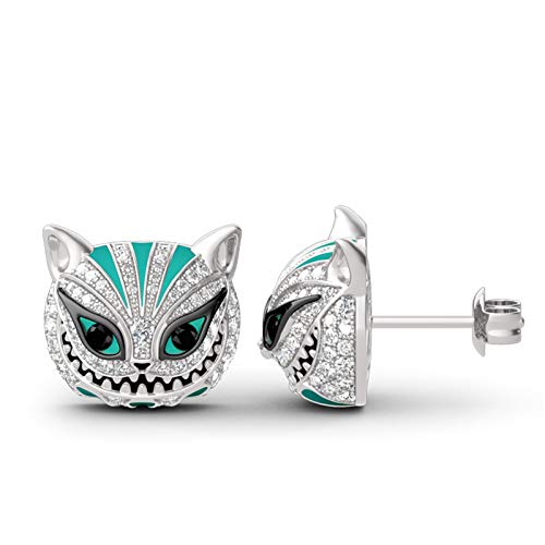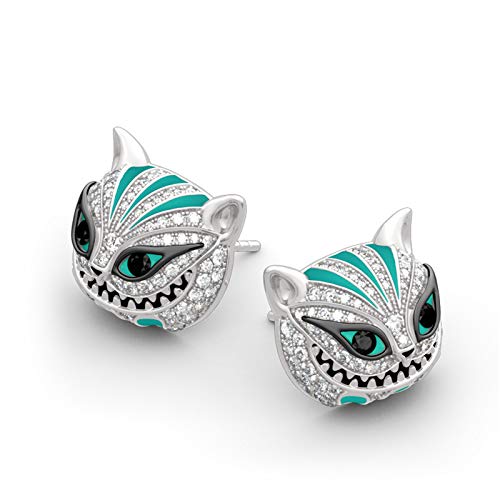 【Inspiration】:The Cheshire Cat is a fictional cat in Alice’s Adventures in Wonderland and known for its ability to appear and disappear at will and for its distinctive mischievous grin. Beautifully handcrafted in sterling silver, each earring features a Cheshire Cat with a cute round head. It shimmers with sparkling stones, bright eyes and prominent teeth.You can`t feed a real Cheshire Cat but you can have this pair of earrings.