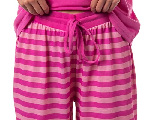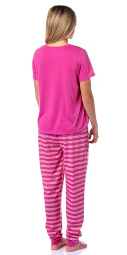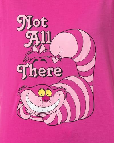 Classic Disney Cartoon Design: Our Alice in Wonderland pajama set lets you lounge in a comfy yet stylish fit. The pajama shirt features the mischievous Cheshire Cat and a soft pink background with the text “Not All There”.