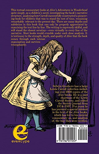 This textual commentary looks at “Alice’s Adventures in Wonderland” quite simply, as a children’s novel, investigating the book’s narrative structure, analysing how Carroll successfully constructed a pioneering book for children that was to stand the test of time, remaining remarkably relevant to the present day. There are many depths and subtleties in this book that can only be properly appreciated by examining the text line by line. The writing is supremely skilful, and will stand the closest scrutiny-even virtually to every line of the narrative. Most books would crumble under such close analysis. It is testimony to the strength, depth, and quality of “Alice” that the book comes through such intense examination and survives triumphantly. —- Selwyn Goodacre has a large Lewis Carroll collection including over 2000 copies of the “Alice” books. He is a past chairman of the Lewis Carroll Society, and edited the Society journal from 1974-1997. For years he has pursued a special interest in the text of the “Alice” books, which has led to his current commentary on, and analysis of, the way they were written.