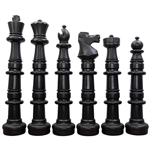 ONE OF THE MOST POPULAR SETS: The Premium 49-Inch Plastic Giant Chess Pieces are the most popular set from MegaChess. The set includes 16 black and 16 white pieces ranging from a 49 inch king to a 40 inch tall pawn. The set can be used both indoors and outdoors and is made with high-quality, long-lasting materials. Once assembled this black and white hard plastic chess board with 14 inch squares can stay outdoors year round in the harshest climates.