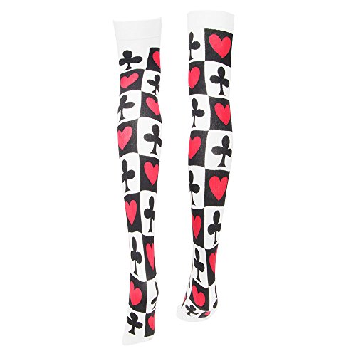 Thigh-Highs: Measuring 26″ inseam, these tights are one size fits most. Complete with a heart-and-club pattern
