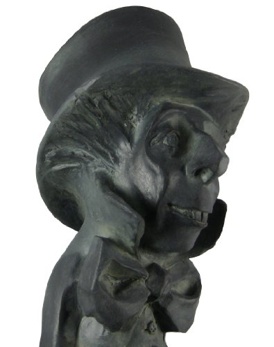 Gorgeous and detailed lamp with a base of Alice in Wonderland characters around a stack of tea cups and a teapot, and the head of the Cheshire Cat on the lamp shade.