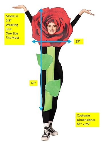DIMENSIONS: The approximate product measurements for the Red Rose Flower Costume are 61″ x 25″ (L x W).