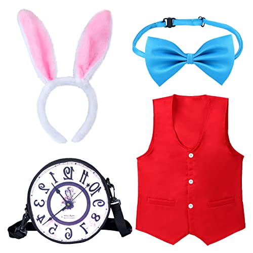 White Rabbit accessory set for children, consisting of a headband with rabbit ears, vest, bowtie, and clock bag