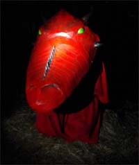 De overgebleven rol was wel een superleuke: die van draak, in menselijke gedaante, die een test begeleidde waarin de deelnemers streden om een grote prijs: hun eigen lot kunnen bepalen. Ik was compleet zwart geschminkt, met gouden schubben en goud gespoten haar. Jammer dat het zo donker en koud was op het moment van de test, dat er niet zo veel van te zien was.