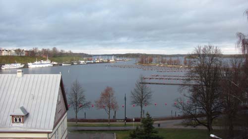 Uitzicht vanuit het hotel op de haven in Lappeenranta