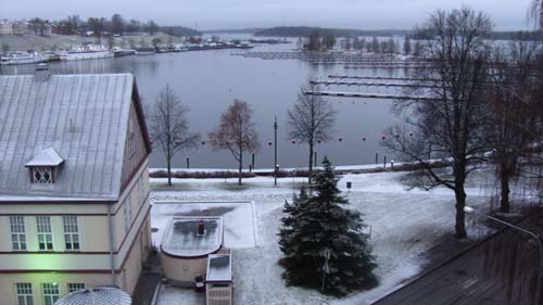 Ons hotelletje gaf uitzicht op de haven en als afscheidscadeautje gaf Finland ons de volgende ochtend… sneeuw!!