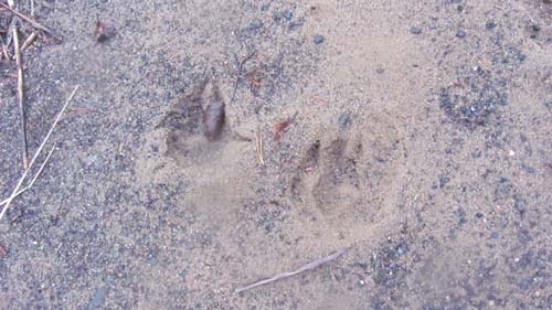 Voor ons huisje vonden we al gelijk sporen van beesten die aan het meer waren komen drinken.