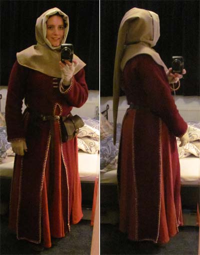 Op vrijdagavond zat ik nog aan mijn nieuwe kaproen te naaien, om ‘m op tijd af te krijgen voor de Midwinterfair. Fijn, dat handwerk… Maar je moet er iets voor over hebben om het authentiek uit te laten zien. Niet dat de rest van mijn outfit historisch correct is, maar zo kan ik ‘m straks ook voor het Gebroeders van Limburg festival gebruiken.