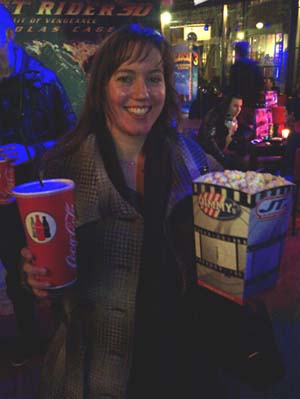Ik had al eens een overweldigende ervaring met een bak popcorn gehad in een bios, dus vroeg ik ditmaal wijselijk om de normale variant in plaats van de ‘large’. Nou, dan zeggen ze dat in Amerika alles groter is, maar in Apeldoorn kunnen ze er ook wat van! (*burp*)