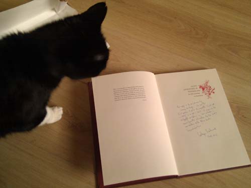 Het ziet er echt heel mooi uit en het is natuurlijk altijd leuk om een boek te hebben met inscriptie van een bekende persoon uit de Alice in Wonderland wereld ![]()