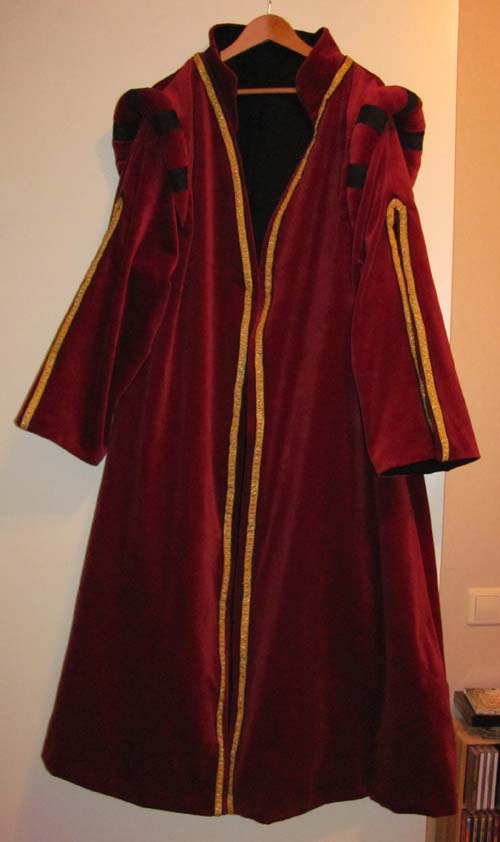 Hij wil niet meer het hele weekend in kilo’s harnas rond hoeven sjouwen en moest dus iets hebben dat hij kan dragen als het harnas uit is. Maar het moest wél over zijn gambeson, maliënkolder en onderhemd kunnen, want het zou te veel werk zijn om steeds alles aan en uit te gaan trekken. Hij moet natuurlijk wel relatief snel gevechtsklaar kunnen zijn. Oh ja, en het moest ook nog in zijn kleuren: rood, geel en zwart.