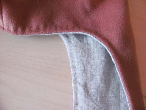 De voering in de mouwen is grijs linnen. Niet heel fancy, maar dat is bewust, omdat ik mijn outfit niet te luxe wilde maken. Hoewel Middeleeuwse muzikanten er doorgaans iets opvallender uitzagen (zij droegen vaak dit soort tweekleurige tenues), waren het nog steeds geen rijkelui, dus dit past hopelijk beter bij het personage dat ik wil kunnen neerzetten.