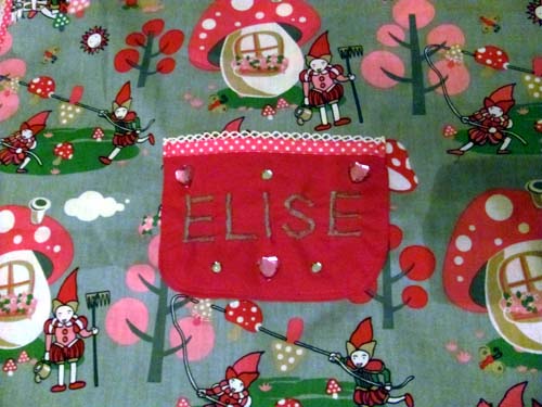 Het zakje pimpte ik met de naam van mijn nichtje en wat extra bling. Hopelijk houdt het in de wasmachine, want het is er gewoon op gelijmd.