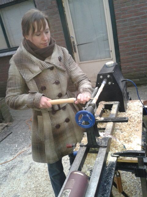 Maar gelukkig was daar een draaibank en was Leander niet te beroerd om die voor me in te zetten. Ik mocht ook zelf een stukje doen:
