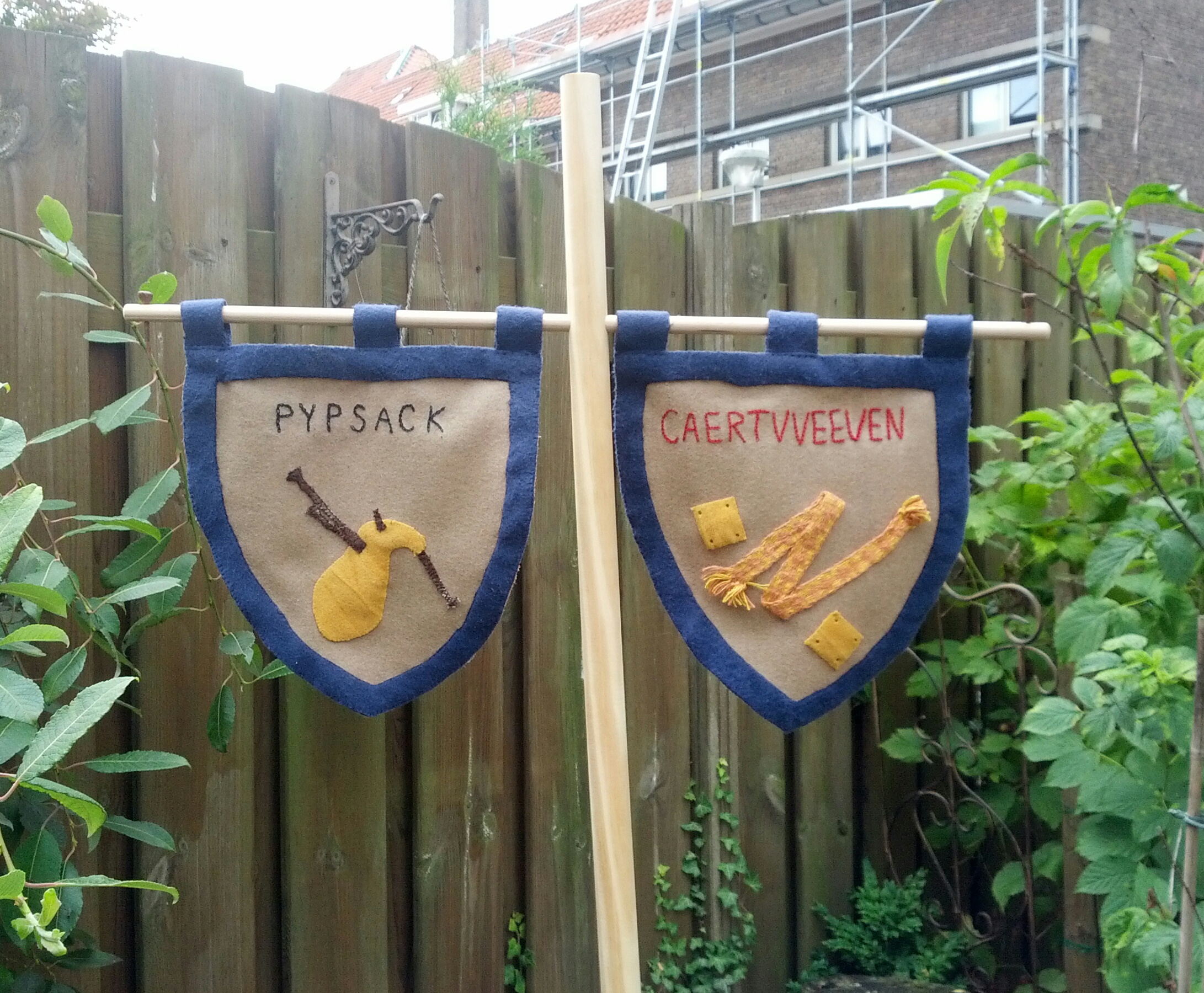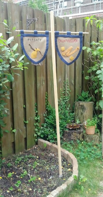Twee anderen in mijn reënactmentgroep hadden er al eentje en los daarvan leek het mij ook een leuk idee om een soort uithangbordje te hebben waarop bezoekers kunnen zien welke ambachten er bij mij te vinden zijn.