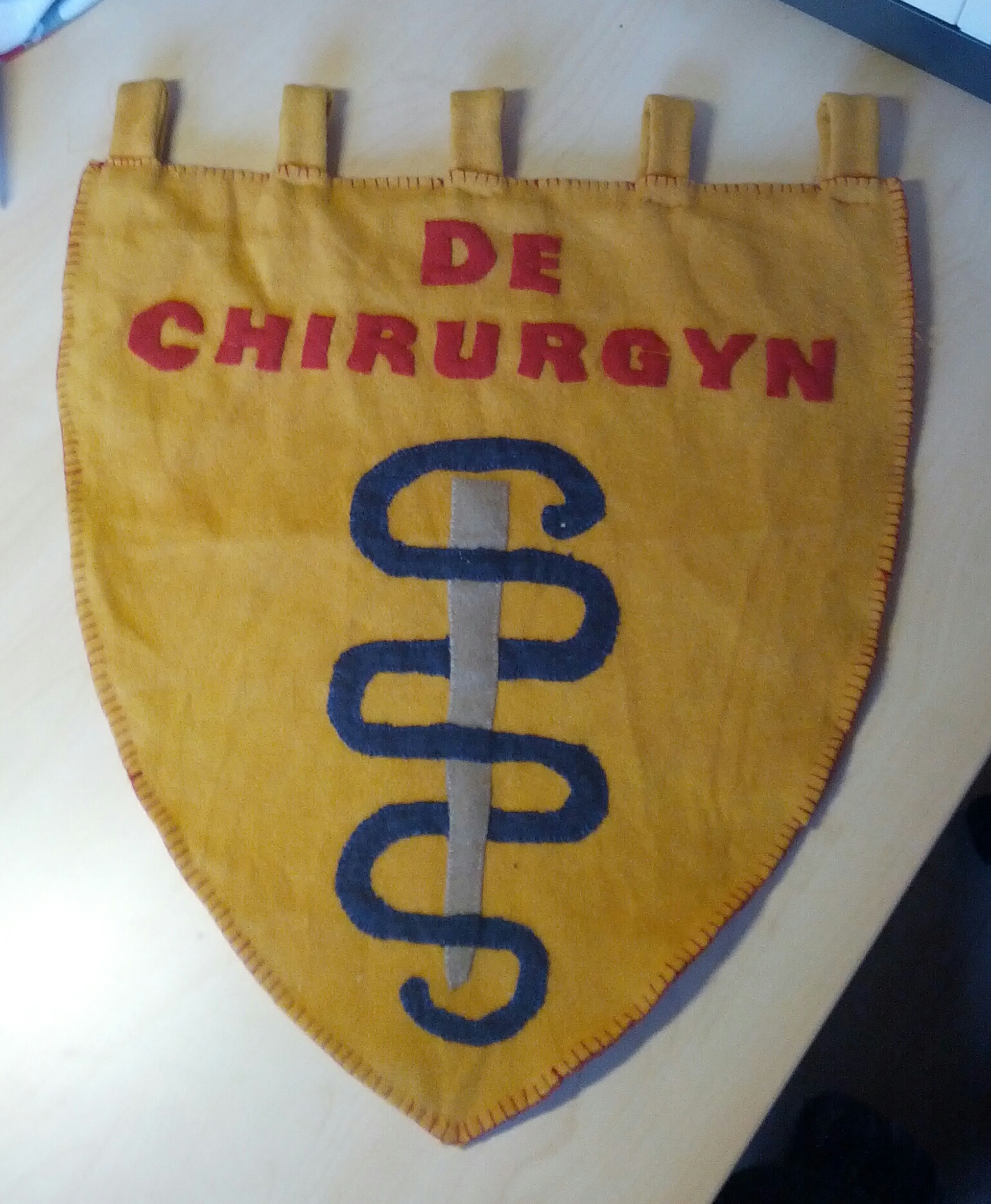Hij kwam zelf met het concept: aan de voorkant de ‘officiële’ benaming voor zijn ambacht, te weten chirurgijn, met een aesculaap. En aan de achterkant de ‘werkelijke’ situatie: kwakzalver, met een fles vergif ![]()
