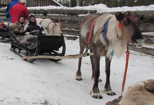 Gelukkig kon dat, maar wel pas om 12 uur. In de tussentijd moesten we maar wat rondwandelen op het terrein, waar een aantal rendieren achter hekken werd gehouden.
