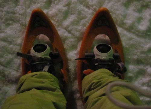 Om de besneeuwde berg uberhaupt op te kunnen komen, kregen we allemaal sneeuwschoenen. Dat zijn dus niet van die tennisrackets, zoals ik dacht, maar ze lijken meer op mini-kajaks: