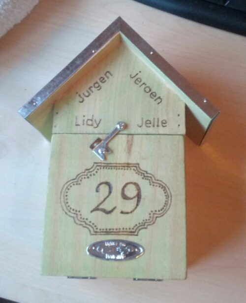 Zwusje was gisteren jarig. Ze stuurde van tevoren een verlanglijstje rond. Daarop stond onder andere: ‘huisnummer 29 (zelfgemaakt?)’.