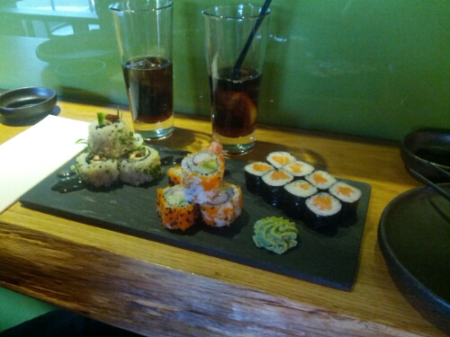 Na de vergadering zijn we eerst eens lekker sushi gaan eten.