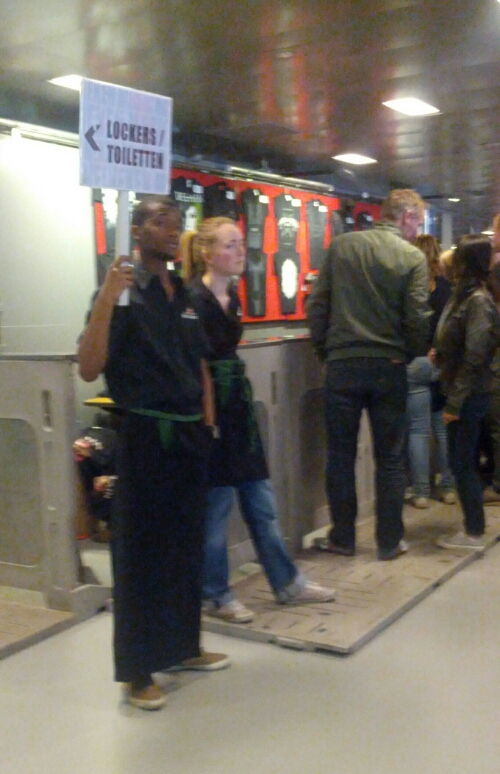 Euh… ik mag aannemen dat er wel vaker grote groepen mensen naar de HMH komen. Dan investeer je toch in duidelijk zichtbare bewegwijzering? Je hoeft toch geen usability specialist te zijn om het probleem hier te signaleren en er een praktische oplossing voor te kunnen bedenken? Of is dit een werkverschaffingstraject? :-X