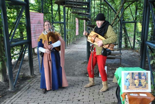 Oud-collega Joost tekende ooit deze superleuke afbeelding voor ons. Maar ja, de personages erop dragen duidelijk geen middeleeuwse kleding, en bovendien oogt een kleurenprintje op papier ook niet bepaald authentiek.