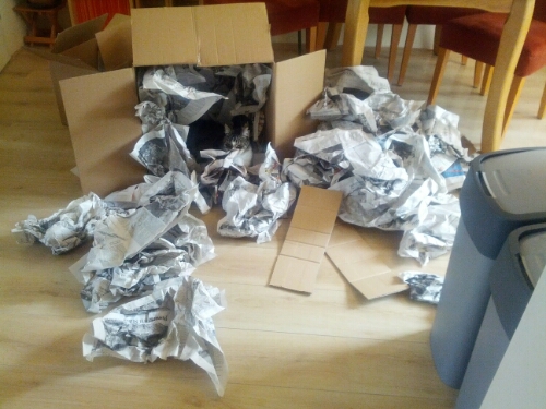 Gelukkig was het geheel goed verpakt in twee dozen en kranten…