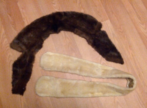 Ik ben wel benieuwd van welke dieren het bont afkomstig is. Beide stukken ruiken naar schaap, maar dat is het duidelijk niet ![]()