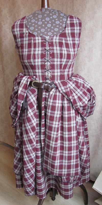 Nog een verschil met mijn andere jurk is dat ik de rok niet aan het lijfje heb gerimpeld, maar er stolpplooien in heb gemaakt. Net iets Keltischer, aangezien die verwijzen naar de plooien in een kilt. ![]()