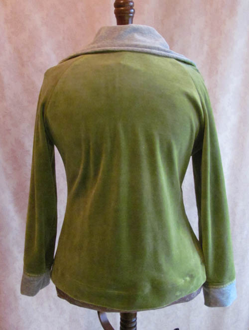De kraag had ik eigenlijk een stuk kleiner willen hebben, maar toen ik er achter kwam dat hij zo wijd zou worden, had ik het voorpand er al laag voor ingeknipt. Waardoor ik er geen rechtopstaand kraagje meer op kon zetten.