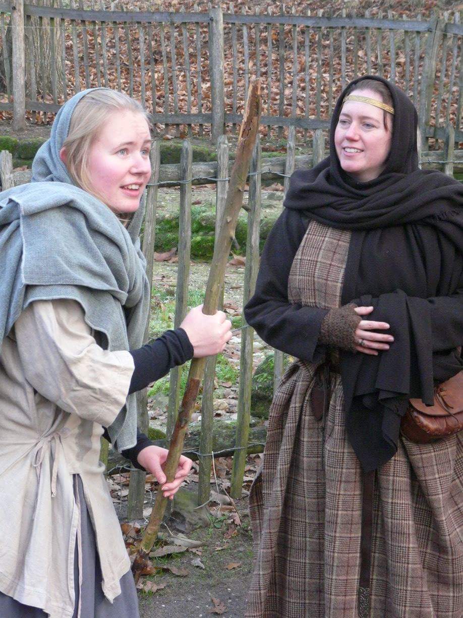 Mijn kostuum bleek gelukkig nét voldoende om me enigszins te beschermen tegen de kou, al heb ik mijn zelfgemaakte schoentjes op een gegeven moment toch maar vervangen door laarzen. De kou trekt best wel van onderen er doorheen, maar erger nog: ondanks een leren inlegzooltje voelde ik ieder kiezeltje. Geen probleem in de geplaveide stad, maar als je over een met keien bezaaid bospad wandelt is het best pijnlijk.