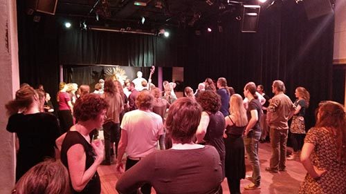 Een paar weken geleden was ik al gaan dansen in de Junushof, maar in Wageningen zijn ze dermate verwend dat ze twéé groepen hebben die folkbals organiseren! Madlot, de muzikanten die de sessies in café de Zaaier leiden waar ik af en toe heen ga, organiseren namelijk (slechts) 2x per jaar ook een bal in de Wilde Wereld. En daar was ik nog nooit eerder geweest. Tijd om eens iets nieuws te proberen.