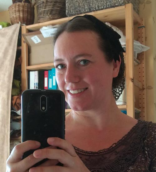 ik zou het opvullen met nephaar ( toko ) maar het haar zo uit je gezicht staat je juist goed, vind ik.