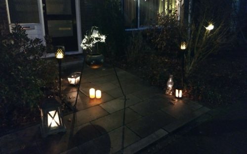 Blijkbaar houdt de school in mijn wijk ieder jaar een lichtjesoptocht. We krijgen dan een briefje in onze bus, met het verzoek om die avond wat extra verlichting buiten te zetten, een leuk muziekje te laten spelen, of iets anders wat leuk is voor de langslopende peuters en kleuters met lantaarntjes.