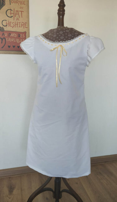 Tot nu toe droeg ik onder mijn Victoriaanse kostuums gewoon moderne shirtjes als onderkleding. Maar eigenlijk hoor je er een chemise (onderjurk) onder te dragen. Ik besloot om er eindelijk eens eentje te maken voor het eerstvolgende Victoriaanse LARP-evenement – degene waar ik ook al de polonaise jurk voor gemaakt had.