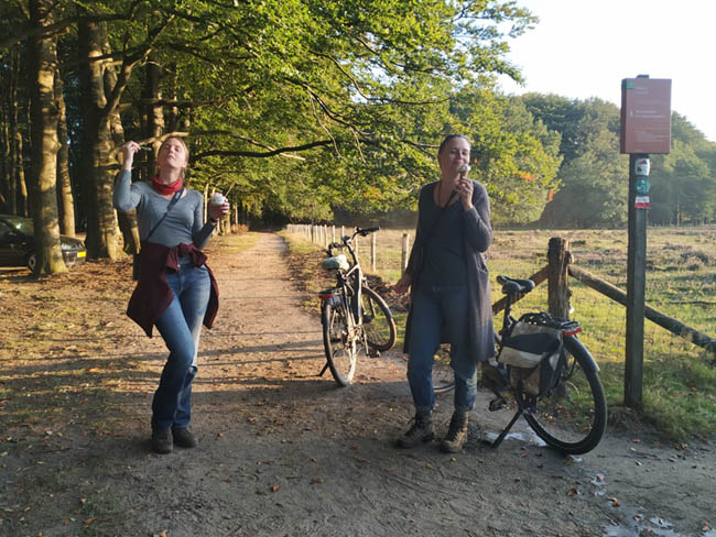 Judith woont tegenwoordig middenin de Veluwe en vanuit haar huis kun je prima wild gaan spotten. Aangezien de bronsttijd inmiddels is begonnen, kwamen Suus en ik gisteren langs in de hoop burlende herten te kunnen horen.