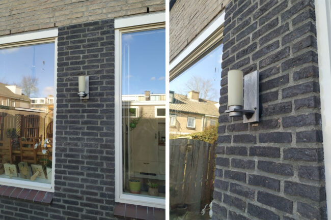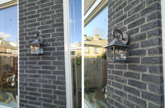 Dus kocht ik ook maar een nieuwe buitenlamp voor in de achtertuin. Degene die al aan mijn muur hing vond ik namelijk niet mooi, dat was de smaak van de vorige bewoners. Maar ja, hij viel amper op en ik had met mezelf afgesproken dat ik die alleen ging vervangen als er een reden toe was. Die reden had ik nu: ik moest iets bij de Gamma bestellen en ze hadden een lamp die ik wel mooi vond. ![]()