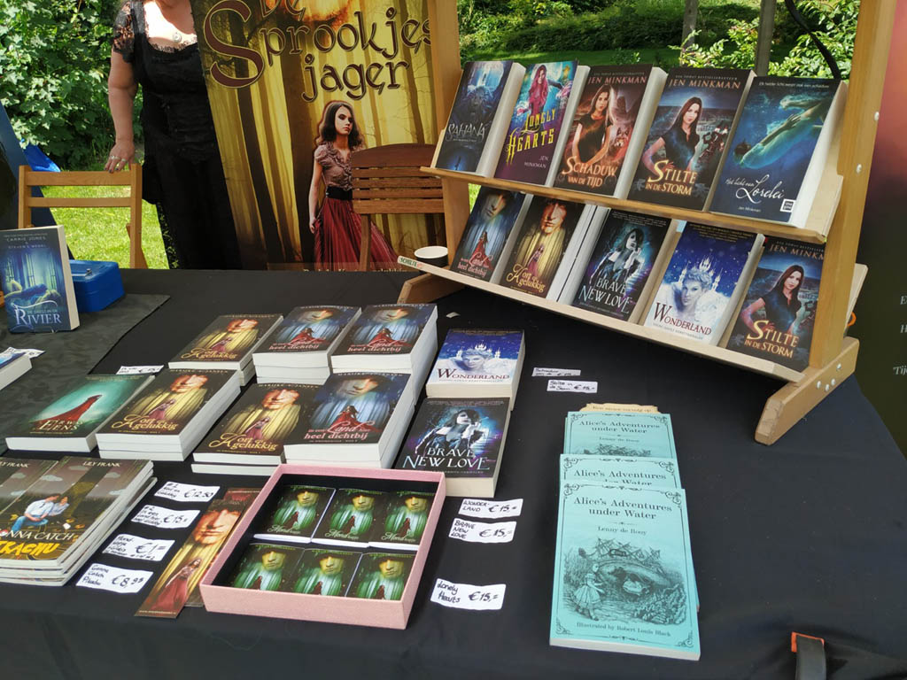 Ik heb ook nog een boek verkocht! Vooraf had ik contact gelegd met een boekhandel die op de standhouderslijst stond, met het verzoek of zij mijn boek in consignatie in hun kraam wilden leggen tijdens het festival. Dat mocht, maar toen ik hen probeerde te vinden op het terrein bleken ze er niet te staan. Volgens een concullega hadden ze helaas moeten afzeggen wegens familieomstandigheden. Jammer, maar daar liet ik me niet door uit het veld slaan, en uiteindelijk kreeg ik het voor elkaar dat die concullega’s mijn boek in hun standje opnamen. En daardoor heb ik dus daadwerkelijk nog een exemplaar weten te verkopen. ![]()