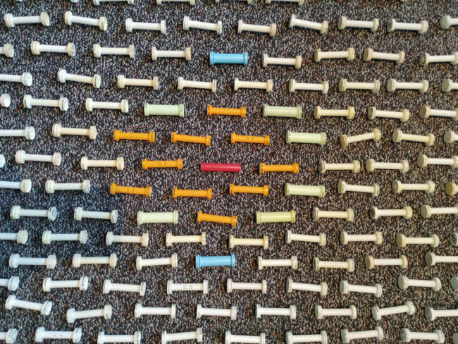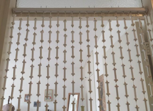 Die van mij fluisterde me namelijk jaren geleden in wat een fantastisch idee het zou zijn als ik een vliegengordijn van lege garenklosjes zou maken! Superleuk, doen!! Ik had zoiets nog nooit ergens gezien, zelfs niet op Pinterest, dus dit was vast ook nog eens mega-origineel. (Spoiler: ik weet inmiddels waarom niemand anders hier aan is begonnen…)