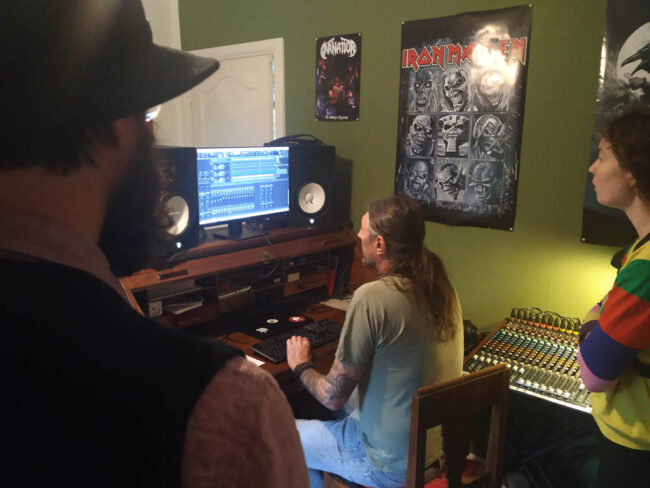 We wisten niet helemaal wat we gingen aantreffen, want we hadden gereageerd op een oproepje op Facebook. De eigenaar van de studio, een hobbyist, wil namelijk wat bijleren en nodigde daarom folkbands uit om gratis langs te komen zodat hij wat kon gaan experimenteren met dat soort muziek. Nou zijn wij ook wel in voor een experimentje, en alvast ervaring opdoen met met z’n drietjes iets opnemen voor als we straks daadwerkelijk een cd gaan opnemen is sowieso nuttig. Bovendien: een mogelijkheid om gezellig iets samen te doen! Win-win!