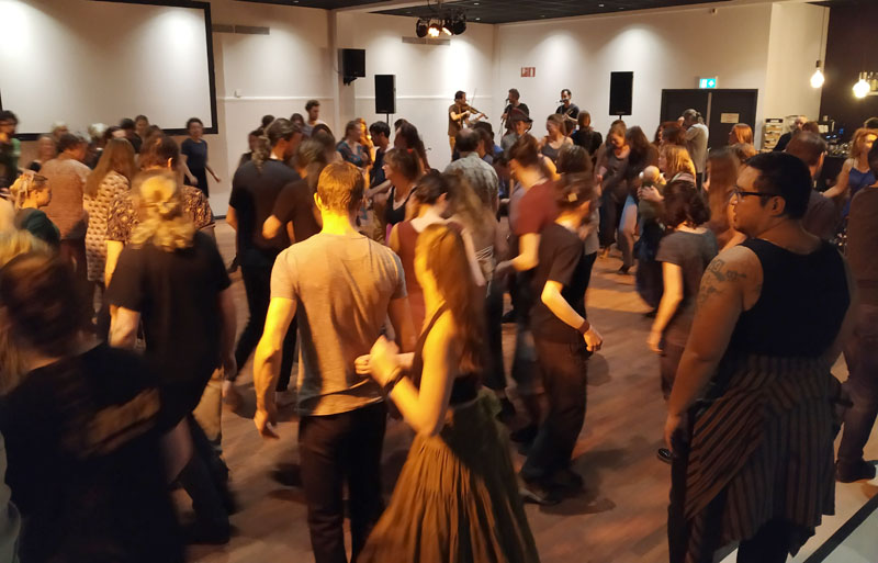 Na nog even lekker gegeten te hebben, was het tijd om afscheid te nemen en vanuit Arnhem direct door te rijden naar Wageningen voor weer een fijn folkbal. Ook nu was er goede muziek en waren er veel mensen met wie ik graag wilde dansen (hoewel het er lang niet altijd met iedereen van gekomen is).