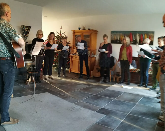 Het was gisteren weer tijd voor de leuke jaarlijkse traditie van de ‘Christmas carol sing along’ bij Rob en Carlie: met hun (muziek)vrienden in hun woonkamer kerstliedjes zingen, begeleid door Rob op gitaar en incidenteel ook door een andere aanwezige die diens instrument bij zich heeft, en met af en toe een tweede stem erdoor als iemand die kent.