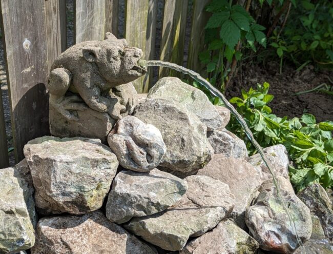 Tijdens het opknappen van de tuin na de winter, kwam ik mijn gargoyle weer tegen. Het beeldje is gemaakt om echt water te spuwen, want er zit een slang in verwerkt. In mijn vorige huis had ik die daadwerkelijk aangesloten op een waterbak, maar na mijn verhuizing had ik hem gewoon in de tuin gezet. Een beetje in een hoekje. Eigenlijk wel sneu.