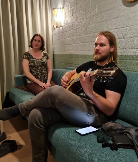 Om pa en ma toch nog een beetje trots op hun kinderen + aanhang te laten zijn, hebben we ‘s avonds de gitaar erbij gepakt en tot na middernacht liedjes gezongen, waarbij Richard indruk maakte door zo even enkele nummers van Iron Maiden weg te spelen op de gitaar. Sindsdien is hij 100% geaccepteerd in de familie. ![]()