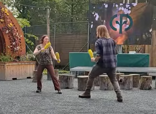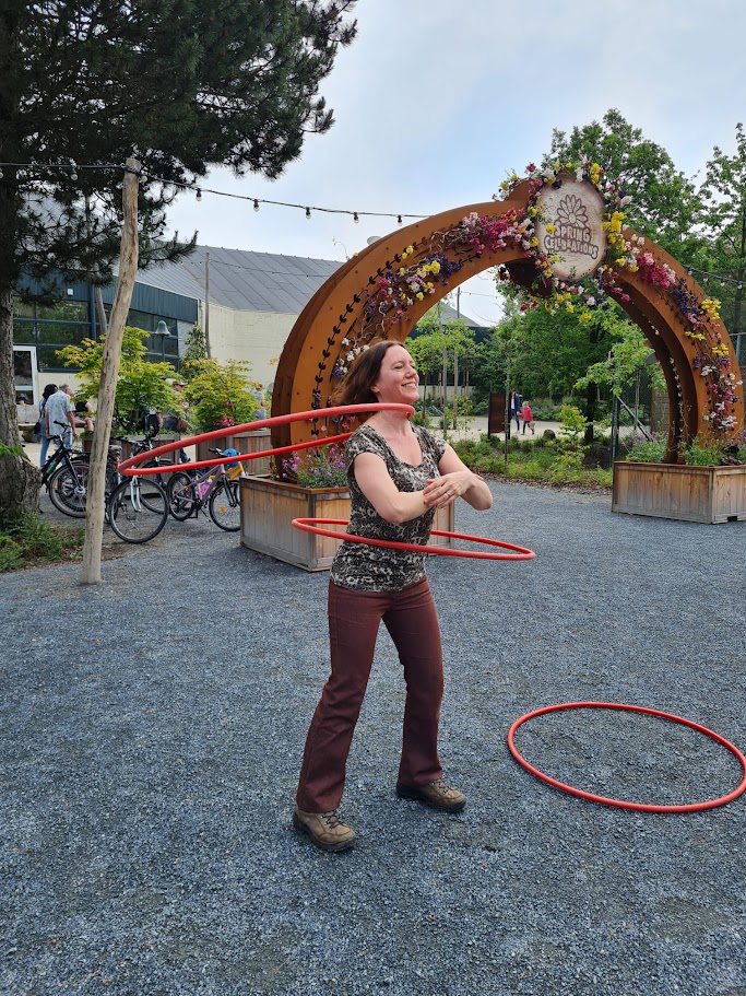 Uiteraard hebben we een hoop lol gehad op de gebruikelijke familie-manier. Zo bleek er in het park een pleintje te zijn met spelletjes voor kinderen. Uiteraard kan ik ook hoepelen, zowel met heupen als nek! En die foam-kegels kun je prima gebruiken om een partijtje te knokken met je vriendje. O:-)